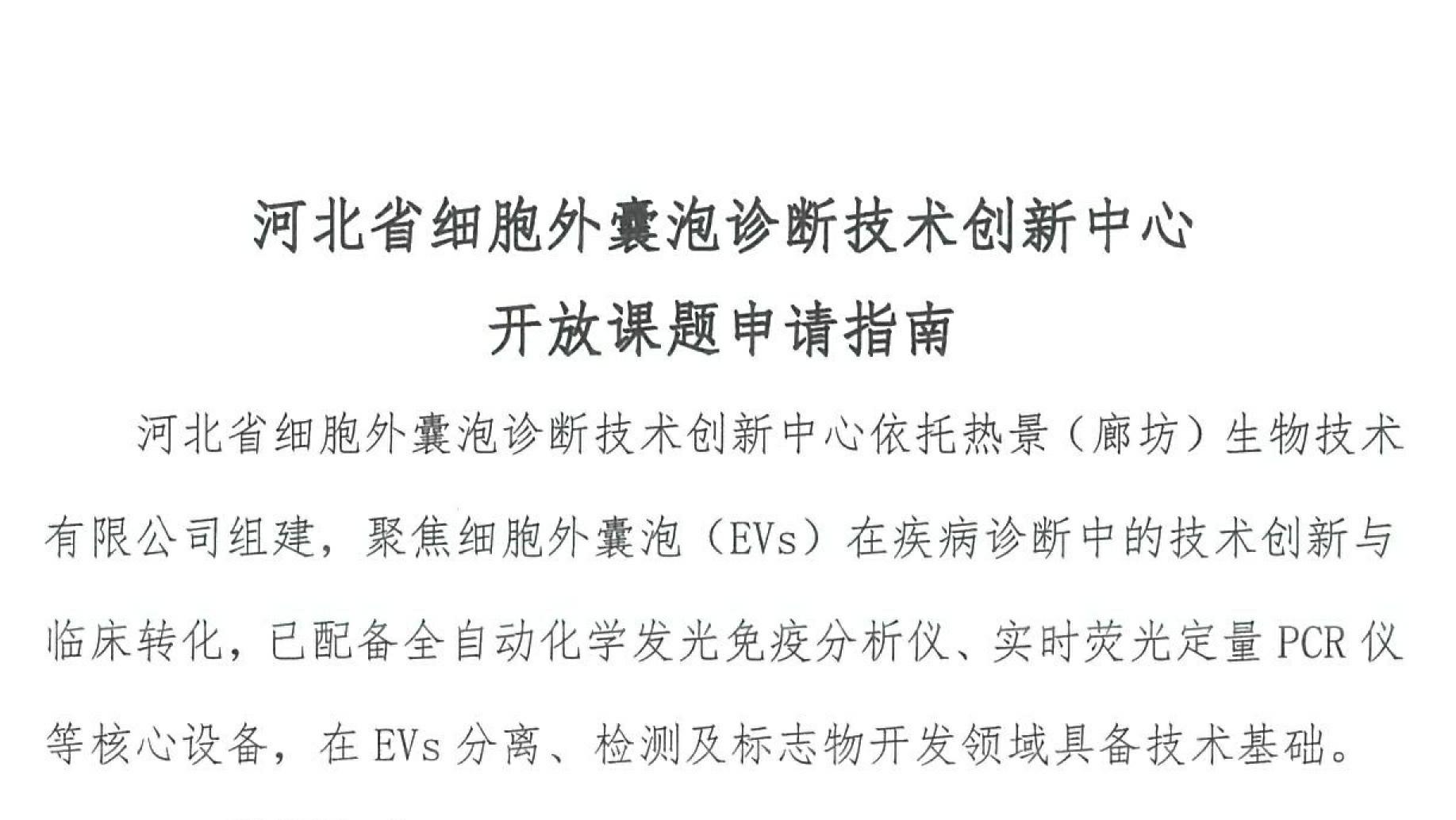 河北省細(xì)胞外囊泡診斷技術(shù)創(chuàng)新中心開放課題申請指南
